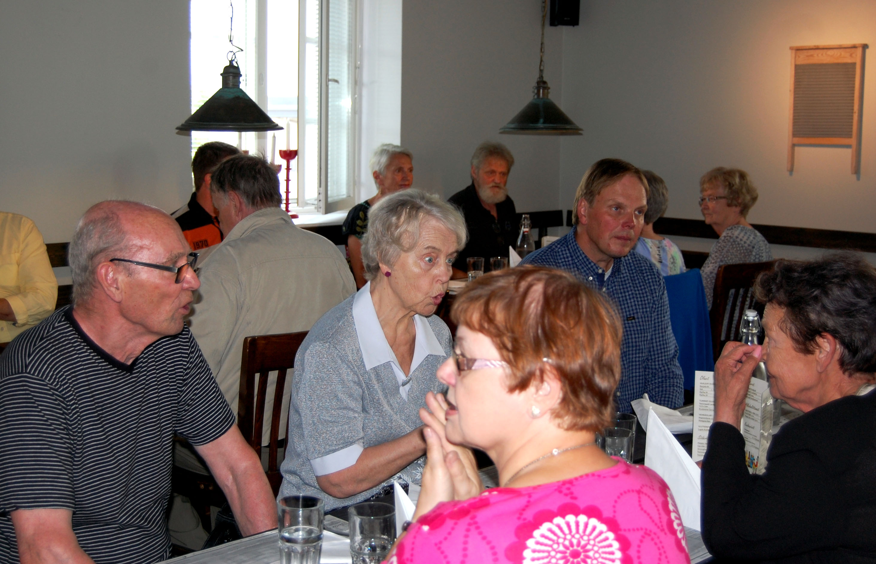 Ravintola Sauna on saanut nimensä siitä, että rakennus oli aikoinaan Yhtyneiden paperitehtaiden omistama, missä tehtaan henkilökunnalle olli tarjolla mahdollisuus niin pyykkäykseen kuin kylpemiseen. Itsellänikin on muistoja siitä, miten muutaman kerran kävin rakennuksessa äitini pestessä siellä pyykkiä. Sen sijaan saunapuoli jäi niin minulle kuin sisarillenikin tuntemattomaksi. Saunaperinteitä talossa vaalittiin sunnuntaina 12. elokuuta muutenkin kuin ravintolan nimen ja sen rekvisiitan vuoksi. Kokoustilamme toisessa kerroksessa oli liki ruotsalaisen saunan lämpöarvoissa, kuten eräs osanottaja tilannetta luonnehti. Vuonna 1938 valmistuneen talon seinät ovat vahvuudeltaan yli puolimetriset ja pitävät hyvin lämmön sisällään, kuten tuli todistetuksi.